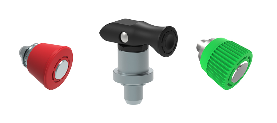 - Prisma-gefärbte Arretierstife erhältlich in Standard und 4C Knopfausführung, um Zugangspunkte durch Farbe zu unterscheiden