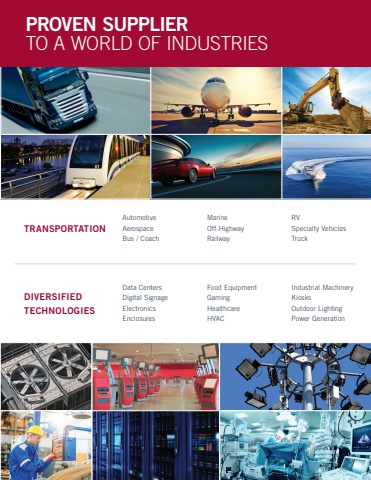 PROVEN SUPPLIER TO A WORLD OF INDUSTRIESAutomotiveAerospaceBus / CoachMarineOff-HighwayRailwayRVSpecialty VehiclesTruckTRANSPORTATIONData CentersDigital SignageElectronics EnclosuresFood EquipmentGamingHealthcareHVACIndustrial MachineryKiosksOutdoor LightingPower GenerationDIVERSIFIED TECHNOLOGIES3